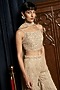 Featuring a beige bustier in net base with 3D work. It is paired with applique work pants and a dupatta. Accentuate it with statement jewellery and heels for a bridesmaid look, sangeet or wedding ceremony.