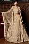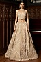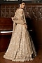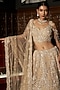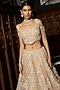Featuring a beige lehenga in net base with sequins, cutdana, crystals, 3D and geometrical hand embellishments. It is paired with blouse and a dupatta. Accentuate it with statement jewellery and heels for a bridesmaid look, sangeet or wedding ceremony.