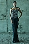 Featuring a black structured corset in organza and satin base with unique collar-strap detailing. It is paired with a skirt. Style it with statement jewellery and embellished heels for evening soirees.