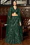 Emerald Green Net Sequins Embroidered Fish-Cut Lehenga Set