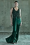 Featuring an emerald green jacket in organza and satin base with crystal work. It is paired with a bustier, skirt and cape. Style it with statement jewellery and embellished heels for evening soirees.