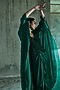 Emerald Green Satin Crystal Work Cape Set