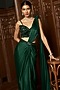 Emerald Green Satin Draped Saree Set