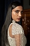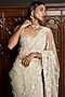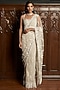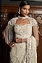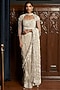 Featuring a grey saree in net base with sequins, cutdana, stones and applique embroidery. It is paired with a blouse and a cape. Accentuate it with statement jewellery and heels for a sangeet ceremony.
