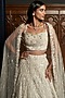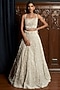Featuring a grey lehenga in net base with applique, sequins and stone embroidery. It is paired with a blouse and a dupatta. Accentuate it with statement earrings and heels for sangeet ceremonies, cocktail parties or pre-wedding ceremonies.