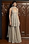 Featuring a grey peplum kurta in net base with sequins embroidery. It is paired with sharara pants and a dupatta. Accentuate it with statement jewellery and heels for a sangeet or wedding ceremony.