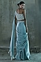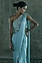 Featuring an ice blue draped saree in satin base. It is paired with a bustier having tonal stone hand embroidery. Style it with statement jewellery and embellished heels for wedding ceremonies.