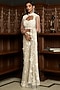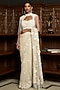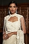Featuring an ivory saree in net base with sequins, cutdana, stones and applique embroidery. It is paired with a blouse and a cape. Accentuate it with statement jewellery and heels for a sangeet ceremony.