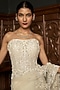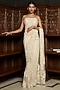 Featuring an ivory saree in net base with sequins, cutdana and pearl embroidery. It is paired with a hand embellished corset blouse. Accentuate it with statement jewellery and heels for a sangeet ceremony.