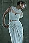 Featuring an ivory corset in organza and satin base with pearl work. It is paired with a cape and skirt. Style it with statement jewellery and embellished heels for evening soirees.