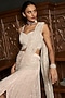 Featuring a pink draped saree in net base with hand embroidery and a slit detail. It is paired with a sequins embroidered blouse. Accentuate it with statement jewellery and heels for a sangeet or wedding ceremony.