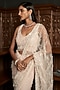 Featuring a pink saree in net base with sequins and abstract motif embellishment. It is paired with a sequins embroidered blouse. Accentuate it with statement jewellery and heels for a sangeet ceremony.