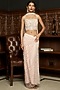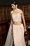 Featuring a pink skirt in net base with sequins and cutdana embroidery. It is paired with a blouse and a dupatta. Accentuate it with statement jewellery and heels for elite cocktail parties.