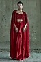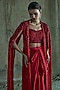 Featuring a red long cape in georgette base. It is paired with a bustier and satin skirt. Style it with statement jewellery and embellished heels for evening soirees.