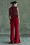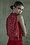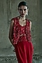 Featuring a red jacket in organza base with 3D hand embroidery. It is paired with a bustier and streamlined pants. Style it with statement jewellery and embellished heels for high-end cocktail events.