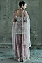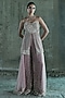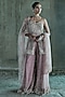 Featuring a rose gold top in net base with embroidery. It is paired with sharara pants and a dupatta. Style it with statement jewellery and embellished heels for wedding soirees.