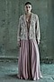 Featuring a rose gold blazer in organza and georgette base with tonal embroidery. It is paired with a bustier and pants. Style it with statement jewellery and embellished heels for evening soirees.