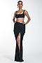 Featuring a black blouse in silk jersey base with crystals embroidery. It is paired with a matching skirt with an adjustable ruched string.