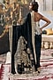 Featuring a black saree in hard net, velvet and brocade base with embroidery. It is paired with an embroidered corset. Accentuate it with dangler earrings and heels for a festive occasions, sangeet or wedding ceremonies.