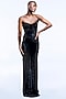 Featuring a black gown in net base with a crystal corset. Accentuate it with zirconia or swarovski jewellery, metallic heels and a leather clutch for a refined look, a great choice for glamorous cocktail parties or bougie gala dinners.