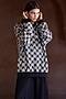 Featuring a black and silver oversized sweatshirt in roma base with houndstooth pattern and crystal embellishments. It is paired with high-waist wide-leg bottoms. Accentuate with statement earrings and heels for a casual wear.