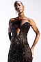 Featuring a brown corseted ruched gown in net base with a deep V-neckline and a trail. Accentuate it with zirconia or swarovski jewellery, metallic heels and a leather clutch for a refined look, a great choice for glamorous cocktail parties or bougie gala dinners.