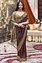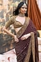 Featuring a burgundy and gold saree in raw silk and cotton cambric base with embroidery. It is paired with an embroidered blouse. Accentuate it with dangler earrings and heels for a festive occasions, sangeet or wedding ceremonies.