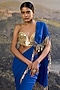 Featuring an electric blue pre-draped saree in georgette base with jhalar latkan detailing. It is paired with a gold corset having mirror embroidery. Accentuate it with statement jewellery, a coordinated clutch and block heels for a stylish ethnic look, perfect for sangeet nights or cocktail parties.