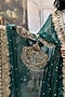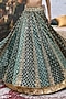 Featuring a green lehenga in cotton cambric and brocade base with embroidery. It is paired with a blouse and an organza dupatta. Accentuate with kundan polki jewellery, block heels and a sleek clutch for an effortless ethnic look, perfect for a wedding or engagement ceremonies.
