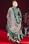 Featuring a green anarkali in brocade base with a deep v-neckline and mirror embellishments. It is paired with a layered lehenga, a jaal embroidered dupatta and a velvet dupatta border embroidery. Accentuate it with statement jewellery, potli and heels for a mehendi, wedding, engagement or sangeet ceremony.