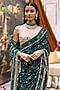 Featuring a green saree in gota, khadi, chikankari and velvet base with embroidery. It is paired with an embroidered blouse. Accentuate it with dangler earrings and heels for a festive occasions, sangeet or wedding ceremonies.