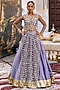 Featuring a lilac lehenga in tissue and brocade base. It is paired with a sleeveless mirror jaal kurta and a bralette. Accentuate with kundan polki jewellery, block heels and a sleek clutch for an effortless ethnic look, perfect for a wedding or engagement ceremonies.