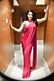 Fitted at bust and waist.