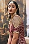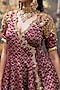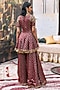 Featuring a maroon short angrakha in brocade, cotton cambric and gota base with motifs details. It is paired with churidar pants and a contrasting embroidered dupatta. Style it with statement jewellery, heels, and a clutch to elevate your look for weddings or festive celebrations.