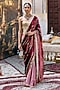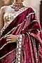 Featuring a maroon and peach saree in butter chanderi, gota and khadi base with embroidery. It is paired with an embroidered corset. Accentuate it with dangler earrings and heels for a festive occasions, sangeet or wedding ceremonies.