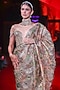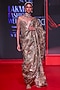 Featuring a multi-colored saree in brocade, velvet and gota base with patchwork embroidery, mirror and stone embellishments. It is paired with an embellished blouse. Accentuate it with statement jewellery and heels for a reception, wedding, engagement or sangeet ceremony.