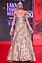 Featuring a multi-colored corset in brocade, velvet and gota base with patchwork embroidery and stone embellishments. It is paired with a skirt. Accentuate it with statement jewellery and heels for a reception, cocktail or sangeet ceremony.