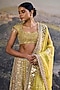 Featuring a multi-colored layered lehenga in organza base. It is paired with an embroidered blouse and an organza dupatta having mirror and gota work. Accentuate it with statement kundan or gold jewellery, a sleek bun and embellished heels for a regal ethnic look, perfect for wedding, engagement or sangeet ceremonies.