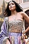 Featuring a multi-colored lehenga in tissue and brocade base with gota and brocade detailing. It is paired with a hard net and soft net halter-neck blouse having mirror jalhar detailing, including an embellished dupatta. Accentuate with kundan polki jewellery, block heels and a sleek clutch for an effortless ethnic look, perfect for a wedding or engagement ceremonies.