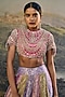 Featuring a multi-colored lehenga in tissue base with lampi gota work. It is paired with a silk jadau blouse and an organza embroidered dupatta. Accentuate it with statement kundan or gold jewellery, a sleek bun and embellished heels for a regal ethnic look, perfect for wedding, engagement or sangeet ceremonies.