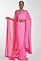 Featuring a neon pink pre-stitched saree in silk jersey base with crystals embroidery. It is paired with a matching blouse and an organza dupatta.