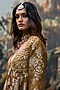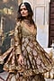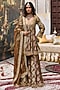 Featuring an olive and brown peplum top in brocade, cotton cambric and velvet base with mirror lace and antique embroidery. It is paired with sharara pants and an embroidered dupatta. Style it with statement jewellery, heels, and a clutch to elevate your look for weddings or festive celebrations.