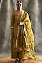 Featuring an olive green kurta in pure georgette, lampi, and mukaish base with hand embroidery. It is paired with matching straight pants in pure crepe base and a silk organza dupatta.