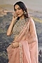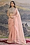 Featuring a peach saree in organza silk base with jadau and bead embroidery. It is paired with an organza embellished blouse. Accentuate it with statement jewellery, a coordinated clutch and block heels for a regal ethnic look, perfect for weddings, festive occasions or grand pooja ceremonies.
