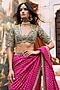 Featuring a pink and turquoise saree in raw silk and cotton cambric base with embroidery. It is paired with an embroidered blouse. Accentuate it with dangler earrings and heels for a festive occasions, sangeet or wedding ceremonies.