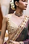 Featuring a purple saree in gota and butter chanderi base with hand embroidery. It is paired with a mirror blouse. Style it with statement jewellery, heels, and a clutch to elevate your look for weddings or festive celebrations.