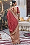 Featuring a red saree in raw silk, cotton, brocade and khadi base with embroidery. It is paired with an embroidered blouse. Accentuate with kundan polki jewellery, block heels and a sleek clutch for an effortless ethnic look, perfect for a festive, wedding or engagement ceremonies.