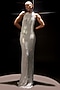 Featuring a silver gown in stretch net base with a halter neckline and crystal detailing. Accentuate it with zirconia or swarovski jewellery, metallic heels and a leather clutch for a refined look, a great choice for glamorous cocktail parties or bougie gala dinners.