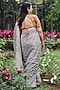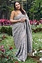 Featuring a silver saree in tissue base with hand embroidery. It is paired with a rust silk blouse having embroidery. Accentuate it with statement jewellery, a coordinated clutch and block heels for a regal ethnic look, perfect for weddings, festive occasions or grand pooja ceremonies.