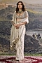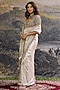 Featuring a silver pre-draped saree in tissue base with mirror jhalar tassels detailing. It is paired with an ivory organza blouse having jadau embellishment. Accentuate it with statement jewellery, a coordinated clutch and block heels for a stylish ethnic look, perfect for sangeet nights or cocktail parties.